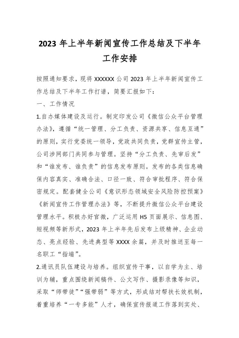 2023年上半年新闻宣传工作总结及下半年工作安排