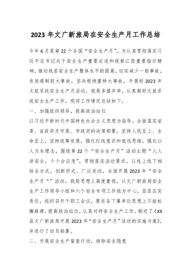 / 2023年文广新旅局在安全生产月工作总结