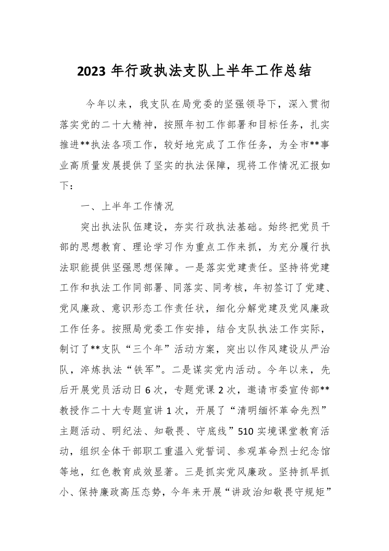 / 2023年行政执法支队上半年工作总结