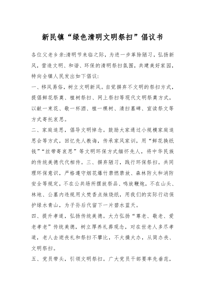 / xx镇“绿色清明 文明祭扫”倡议书