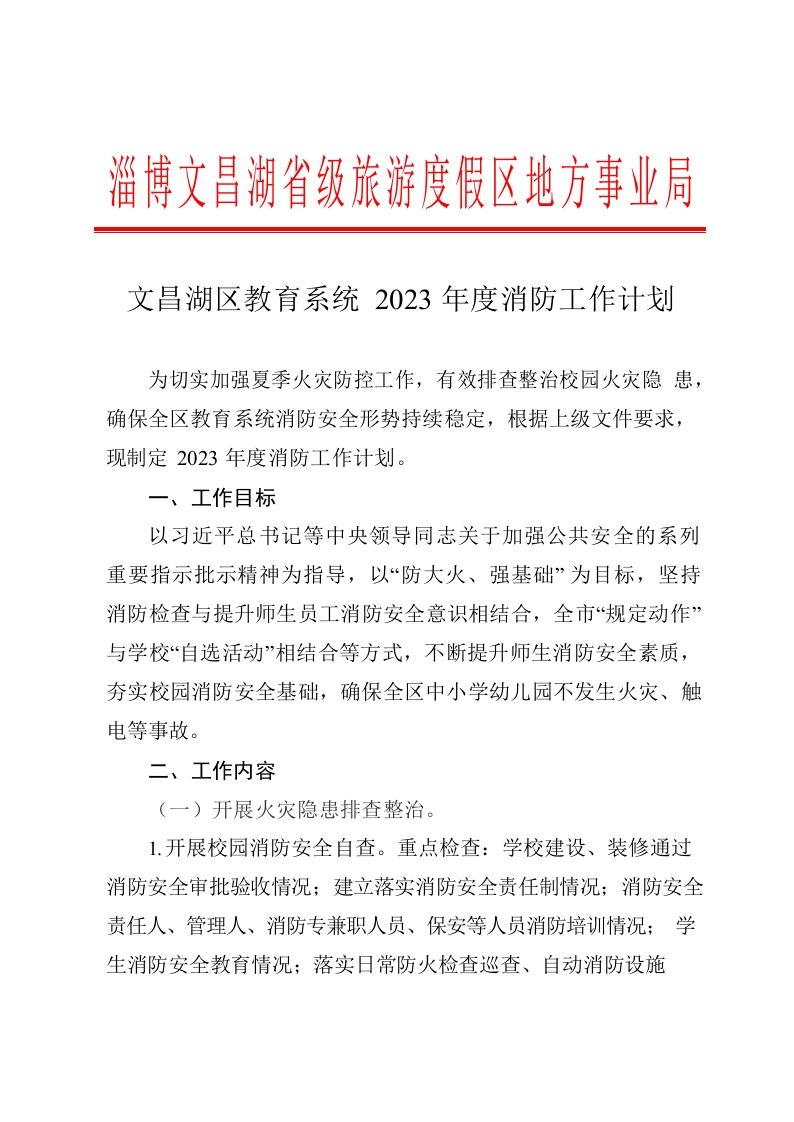 / 全区教育系统2023年度消防工作计划(文昌湖)