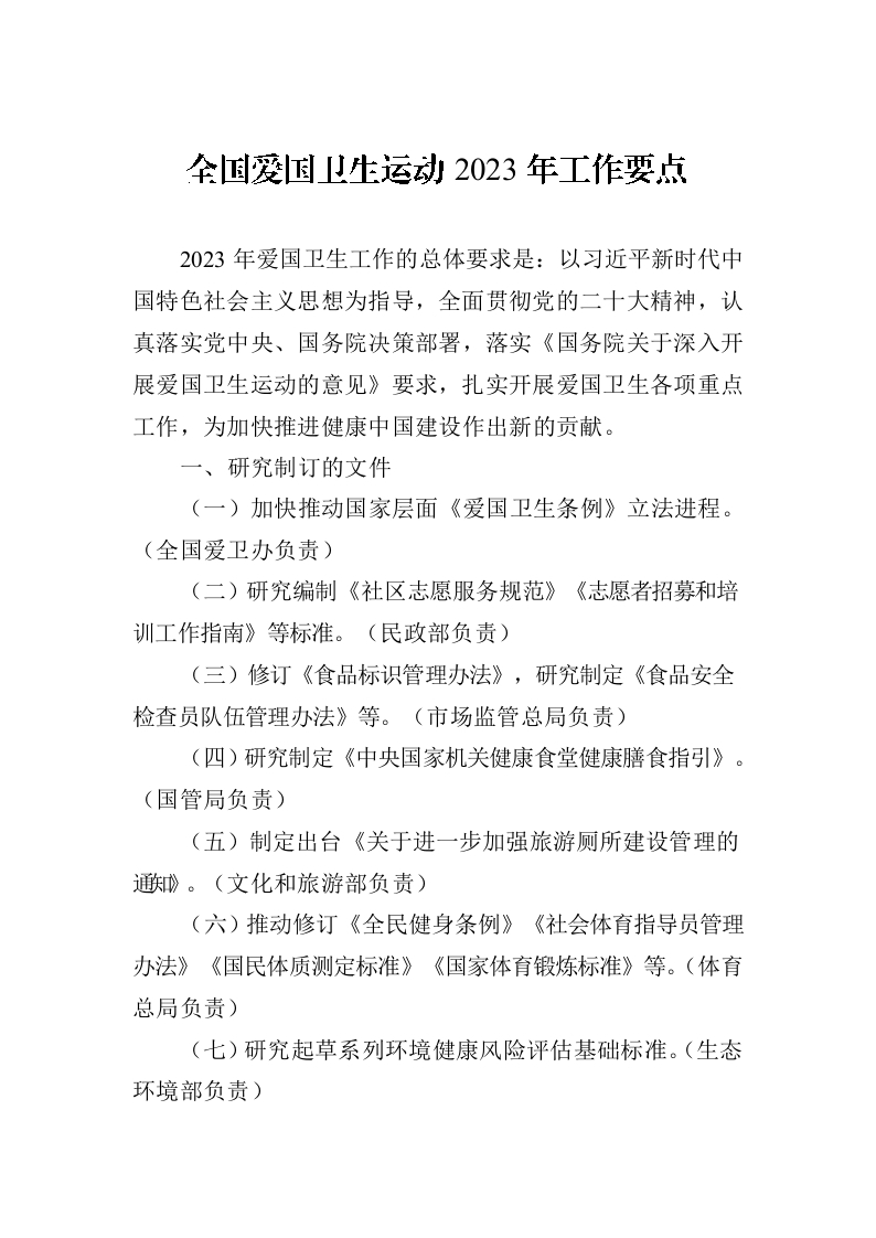 全国爱国卫生运动2023年工作要点(20230302)