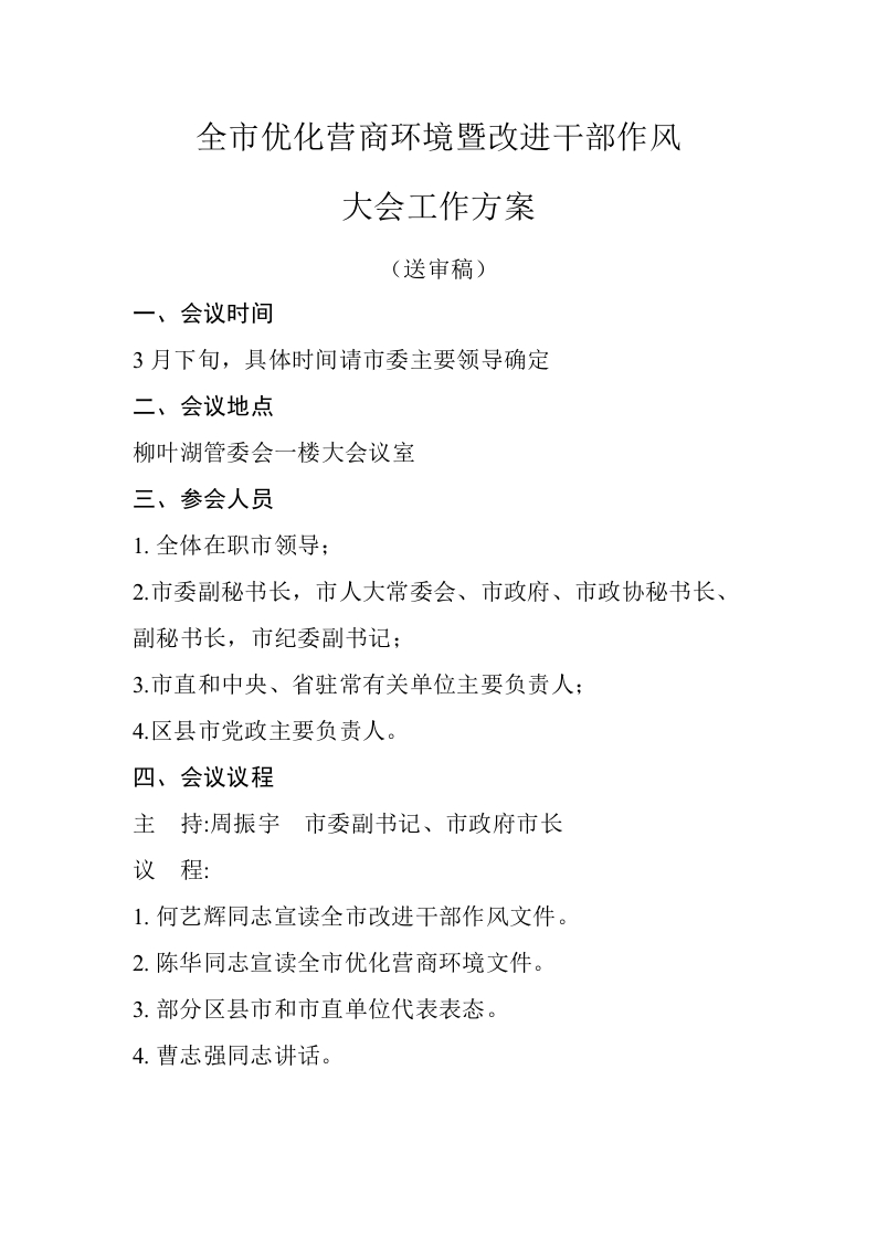 / 全市优化营商环境(改进干部作风)会议方案