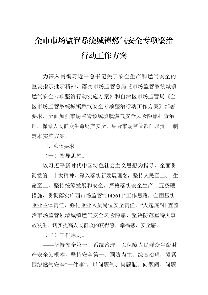/ 全市市场监管系统城镇燃气安全专项整治行动工作方案(20230825)