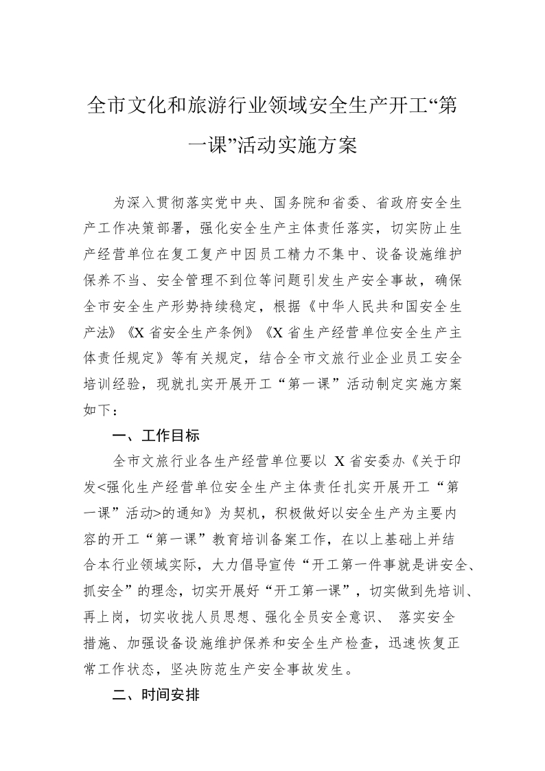 / 全市文化和旅游行业领域安全生产开工“第一课”活动实施方案