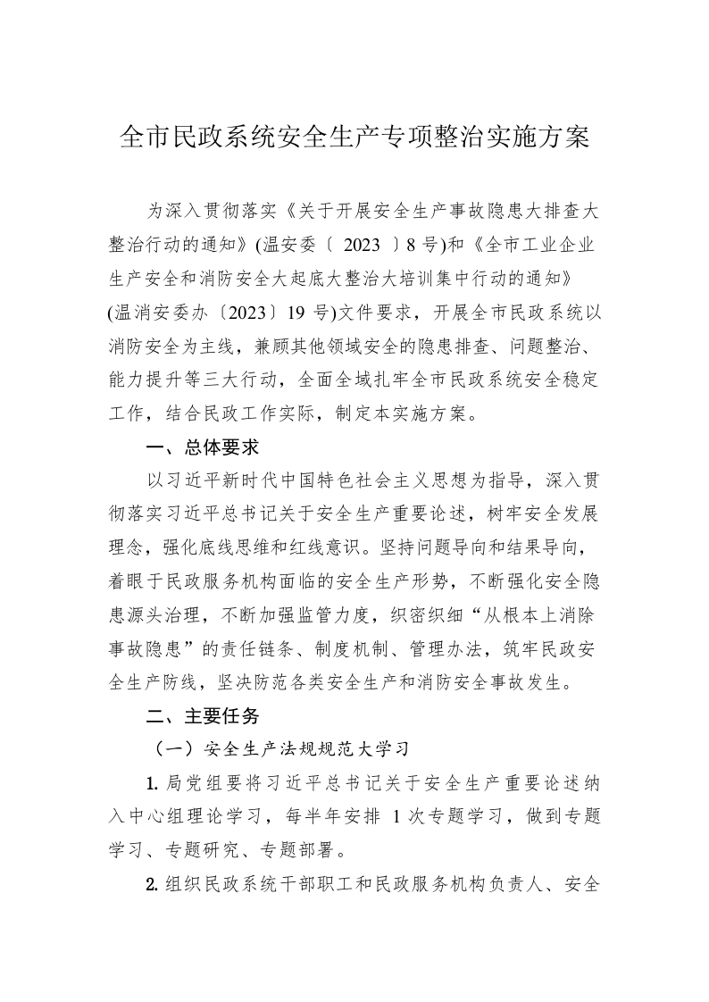 / 全市民政系统安全生产专项整治实施方案(20230420)
