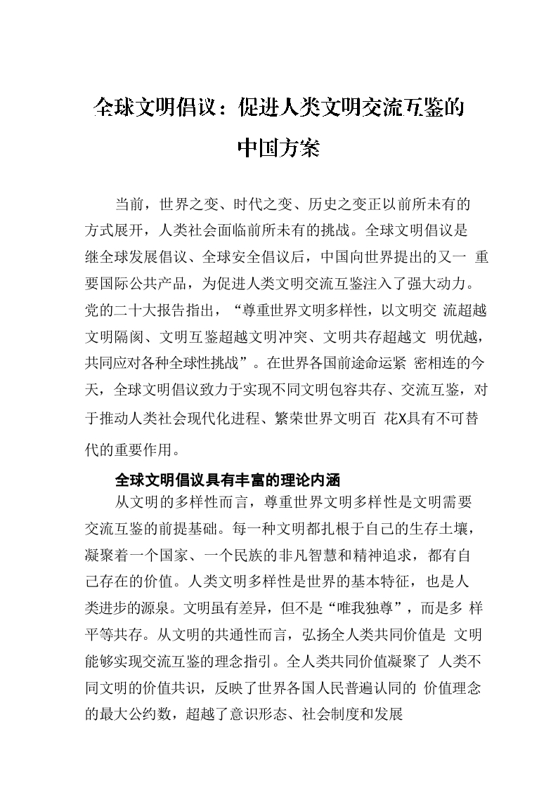 全球文明倡议:促进人类文明交流互鉴的中国方案