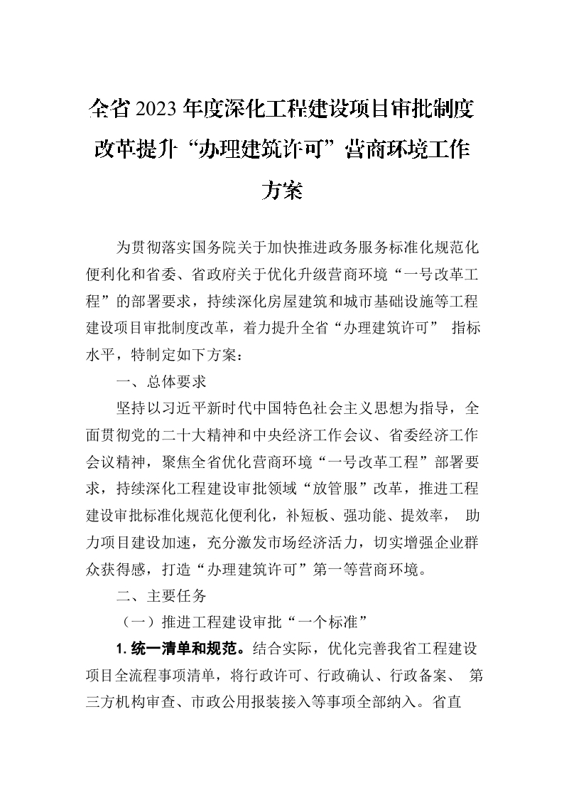 / 全省2023年度深化工程建设项目审批制度改革提升“办理建筑许可”营商环境工作方案(20230614)