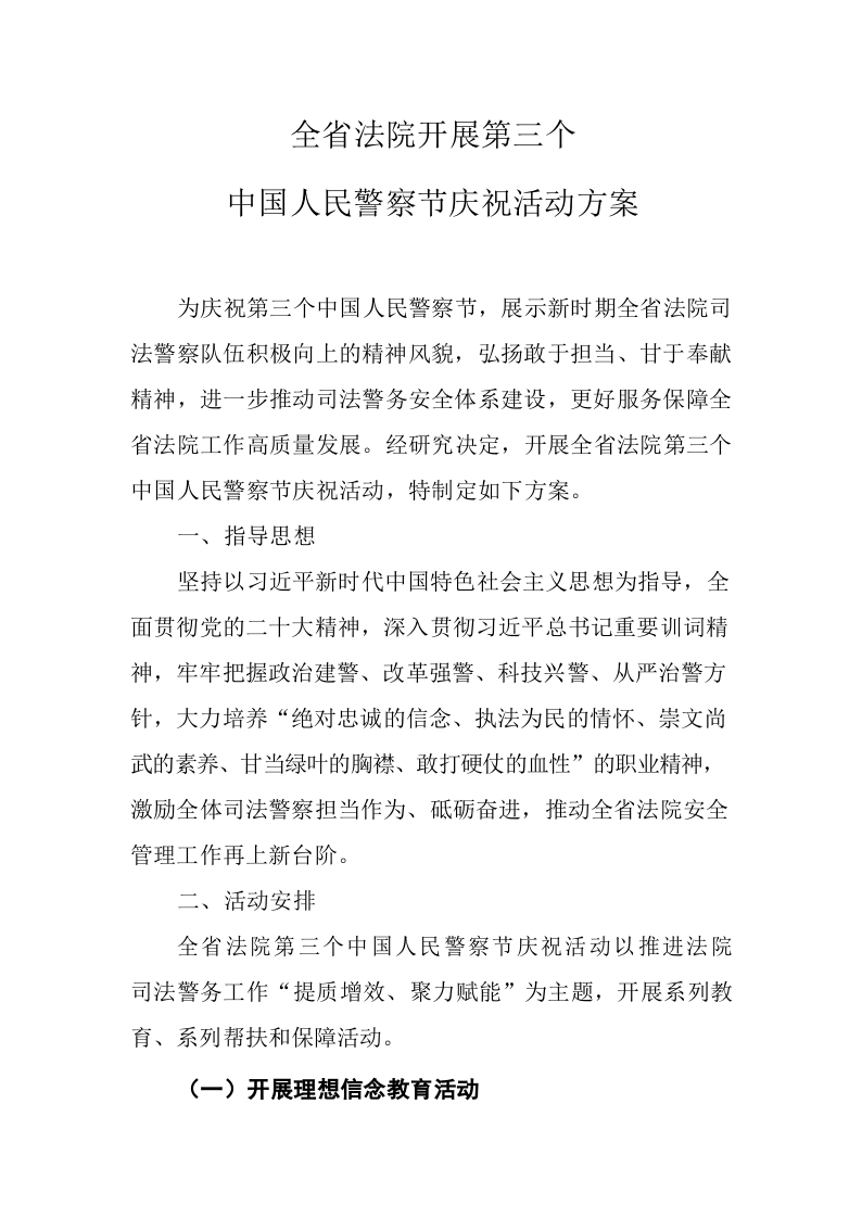 全省法院开展第三个中国人民警察节庆祝活动方案