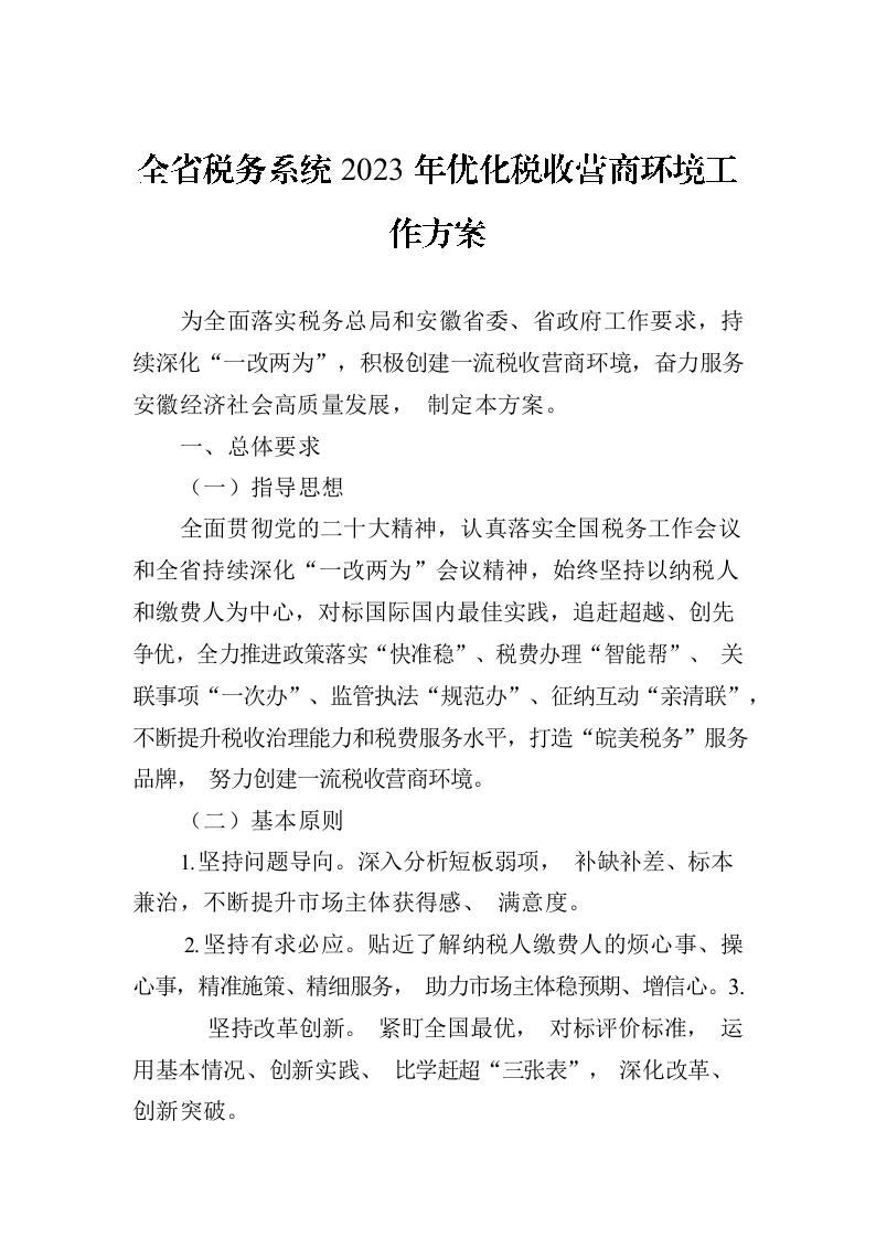 / 全省税务系统2023年优化税收营商环境工作方案(20230317)