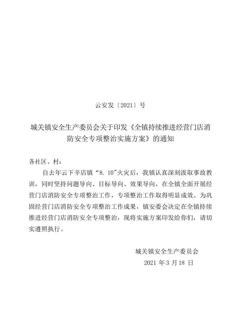 / 全镇持续推进经营门店消防安全专项整治实施方案