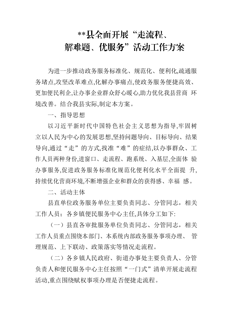 / 全面开展走流程解难题优服务活动工作方案