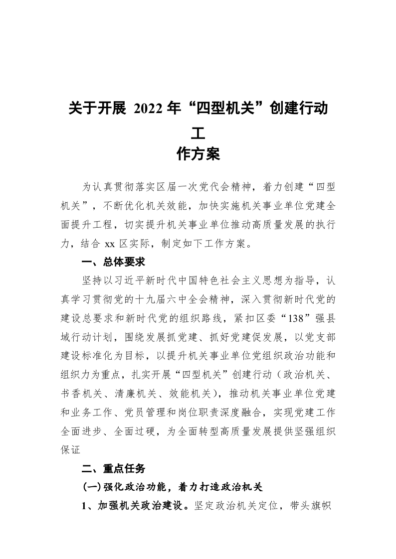/ 关于开展2022年“四型机关”创建行动工作方案