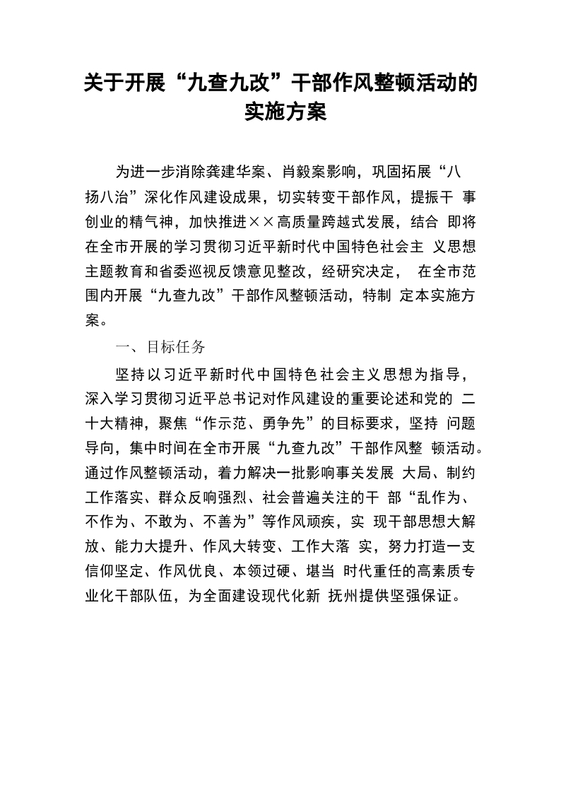 / 关于开展“九查九改”干部作风整顿活动的实施方案