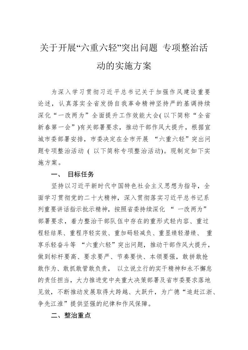 / 关于开展“六重六轻”突出问题 专项整治活动的实施方案