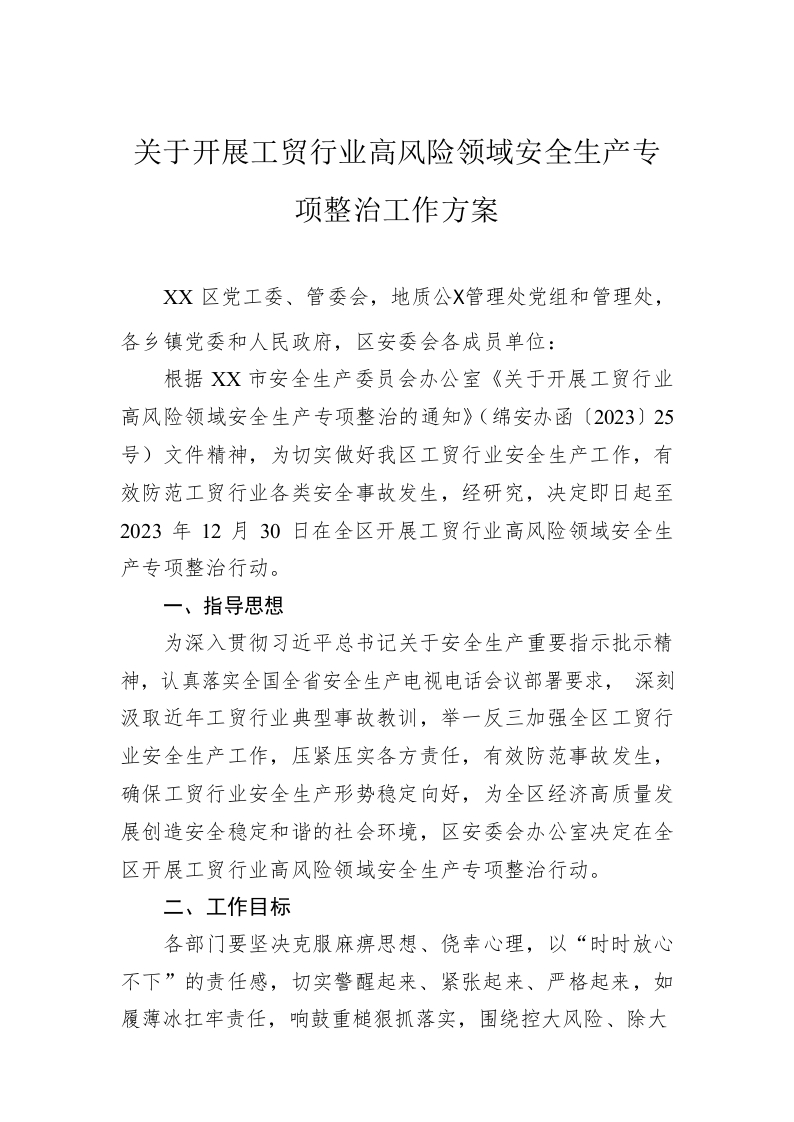 关于开展工贸行业高风险领域安全生产专项整治工作方案(20230413)