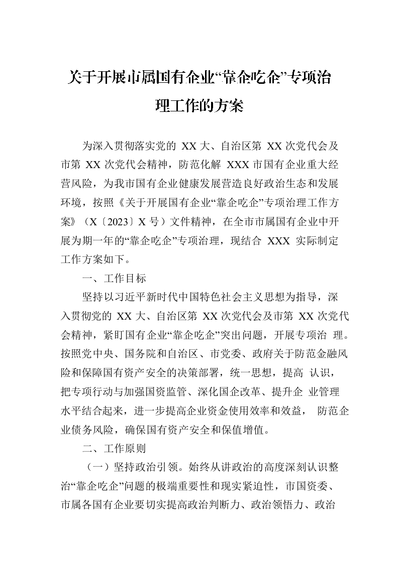 / 关于开展市属国有企业“靠企吃企”专项治理工作的方案