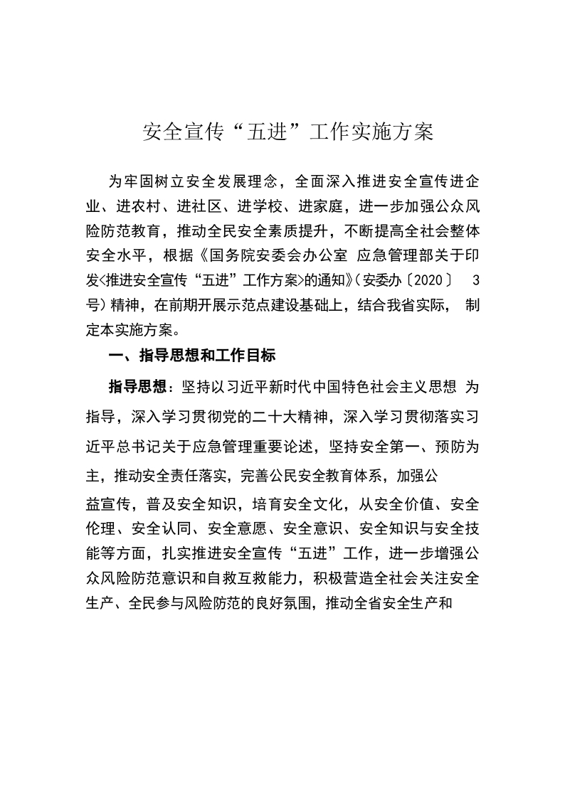 / 安全宣传“五进”工作实施方案