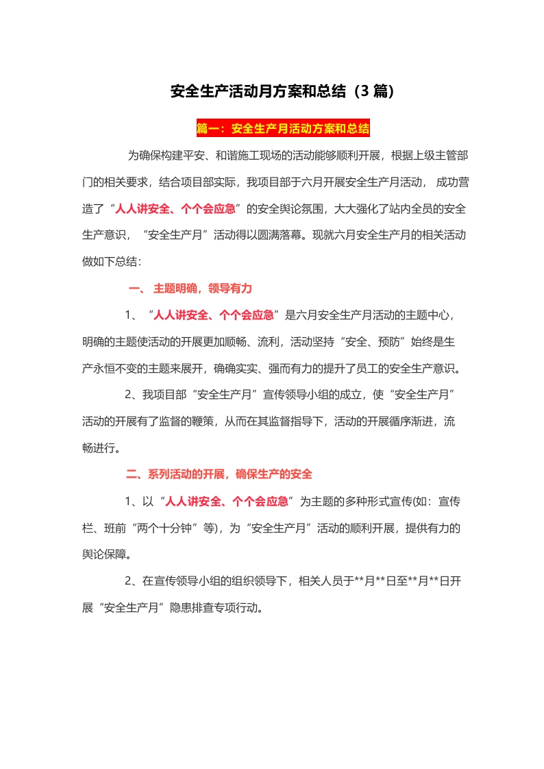 / 安全生产活动月方案和总结(3篇)