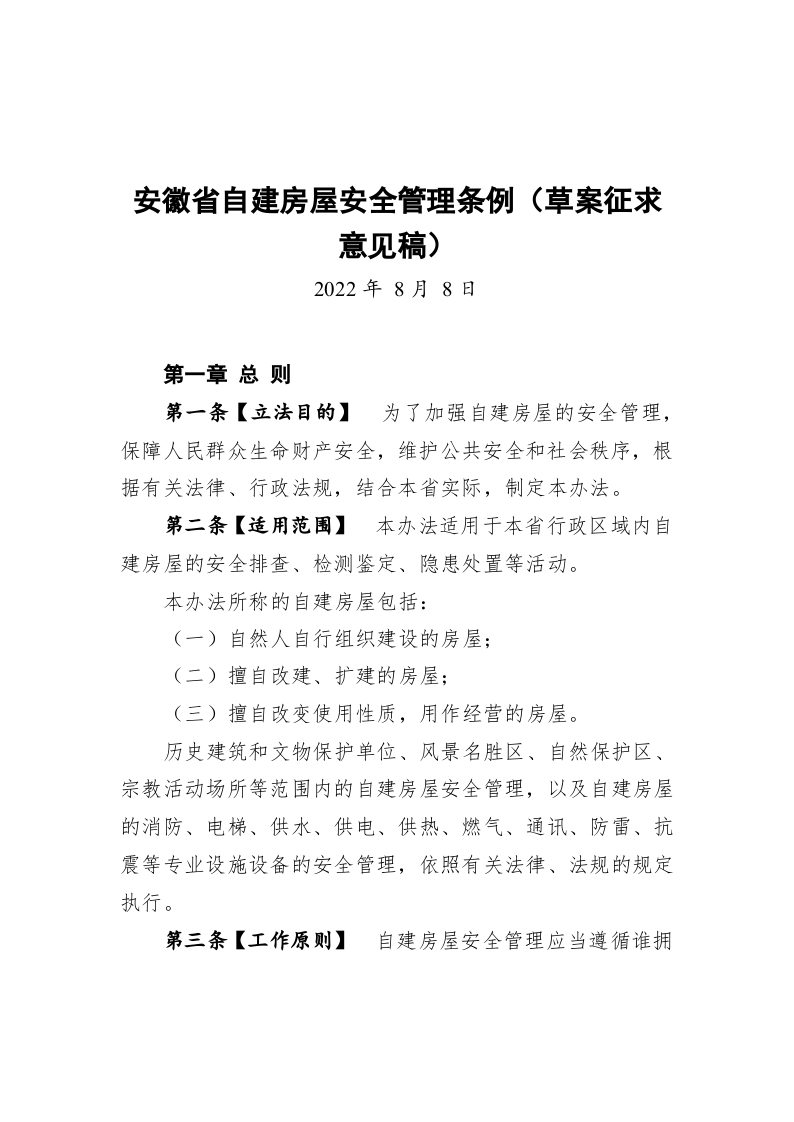 / 安徽省自建房屋安全管理条例(草案征求意见稿)(20220808)