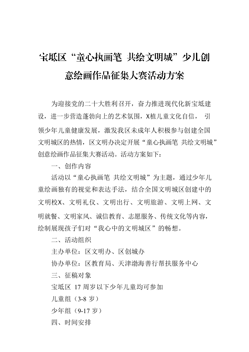/ 宝坻区“童心执画笔 共绘文明城”少儿创意绘画作品征集大赛活动方案