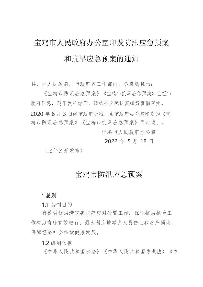 / 宝鸡市人民政府办公室印发防汛应急预案和抗旱应急预案的通知(2022年)