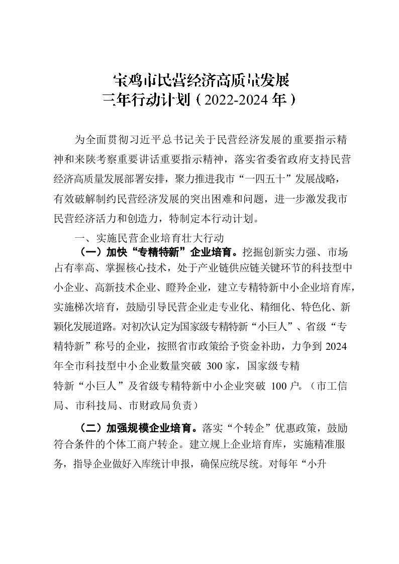 / 宝鸡市民营经济高质量发展三年行动计划(2022-2024年)