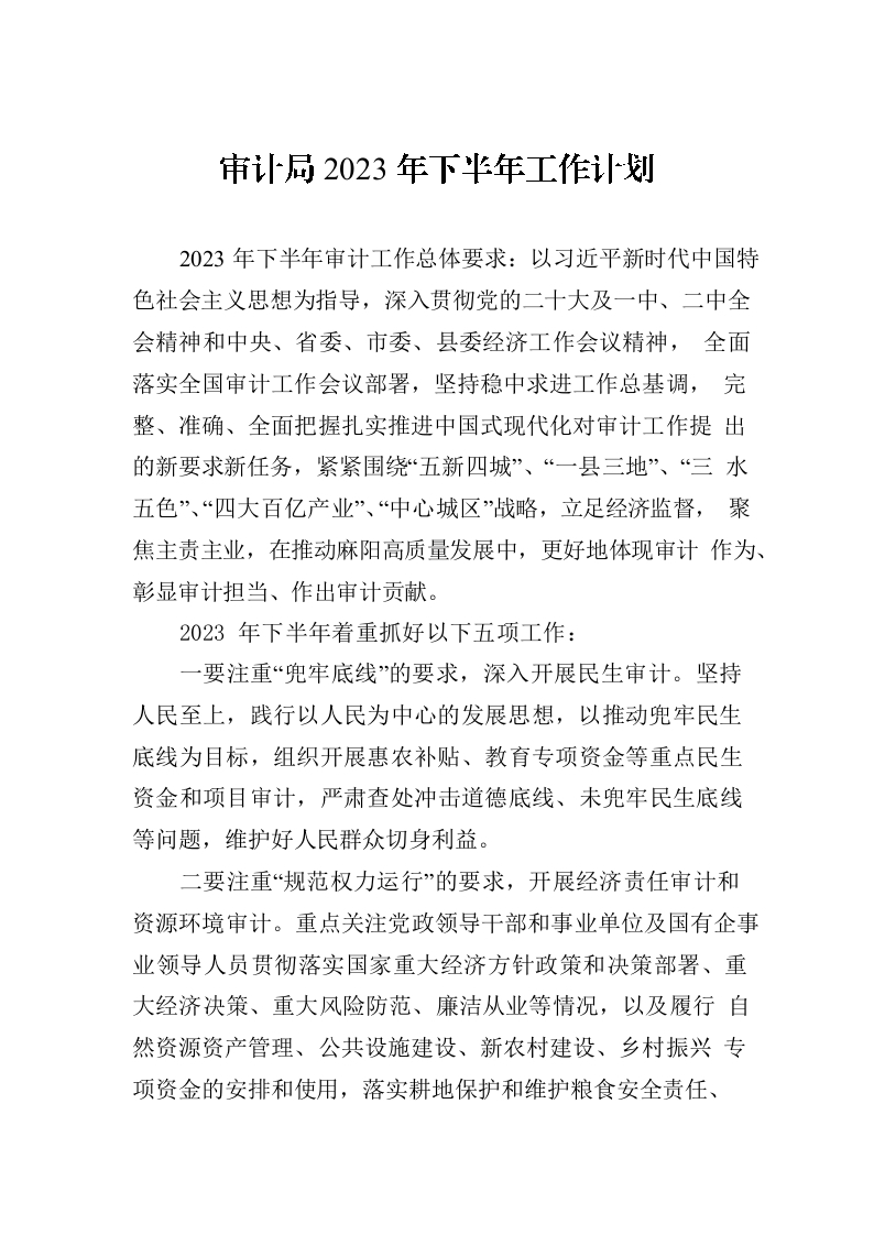 / 审计局2023年下半年工作计划(20230619)