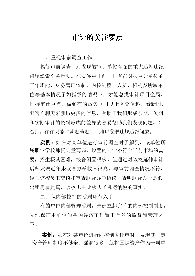 审计的关注要点