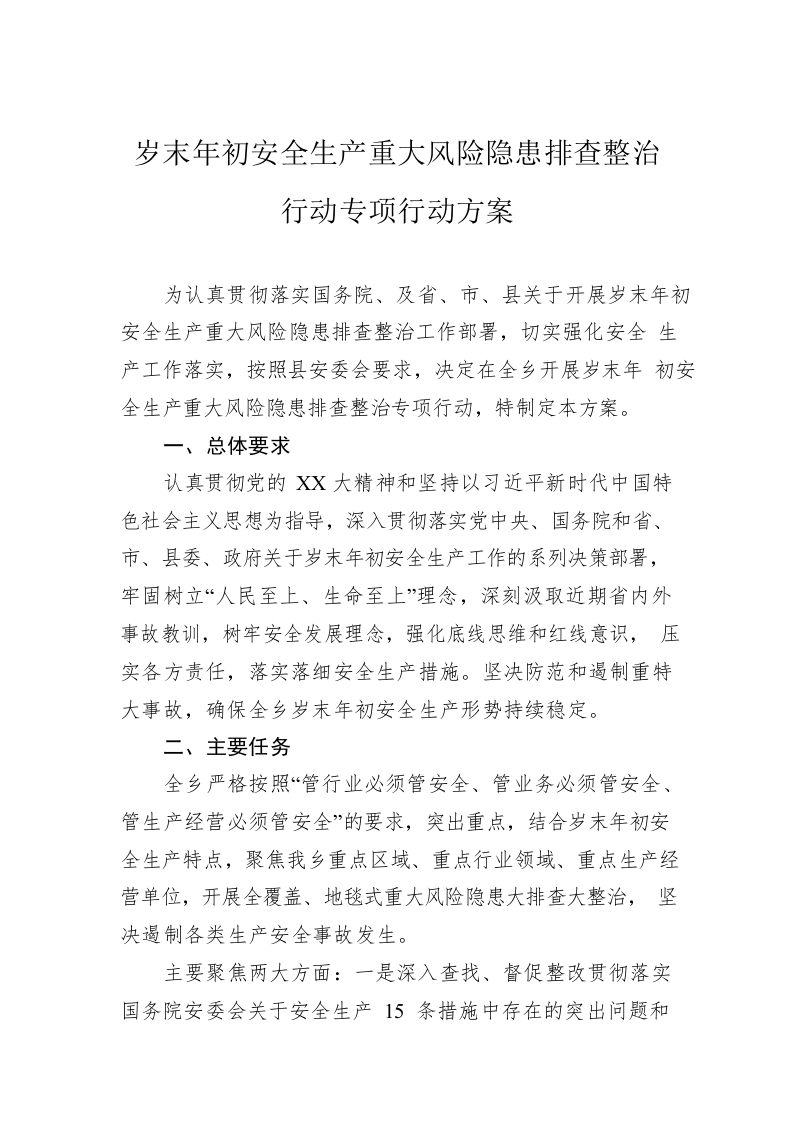 / 岁末年初安全生产重大风险隐患排查整治行动专项行动方案