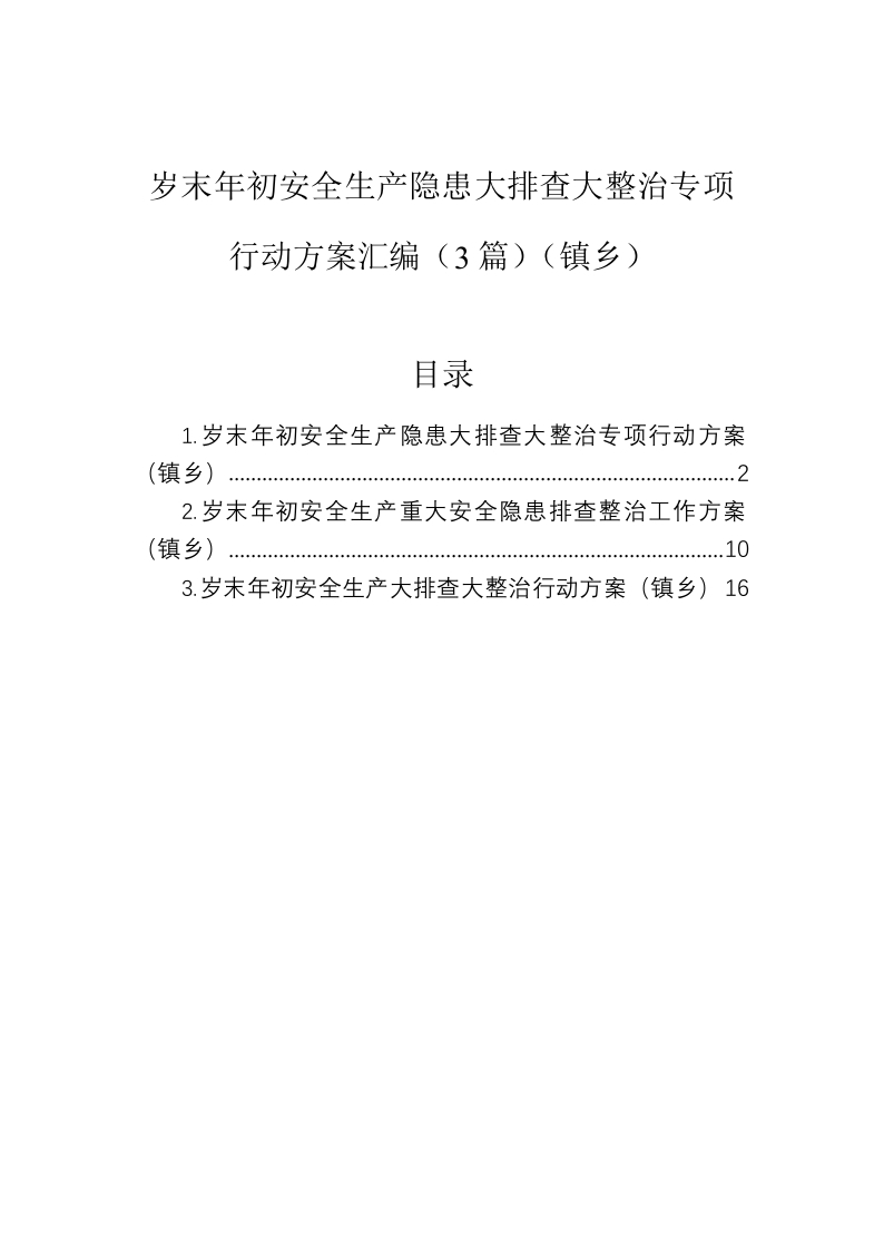 / 岁末年初安全生产隐患大排查大整治专项行动方案汇编(3篇)(镇乡)