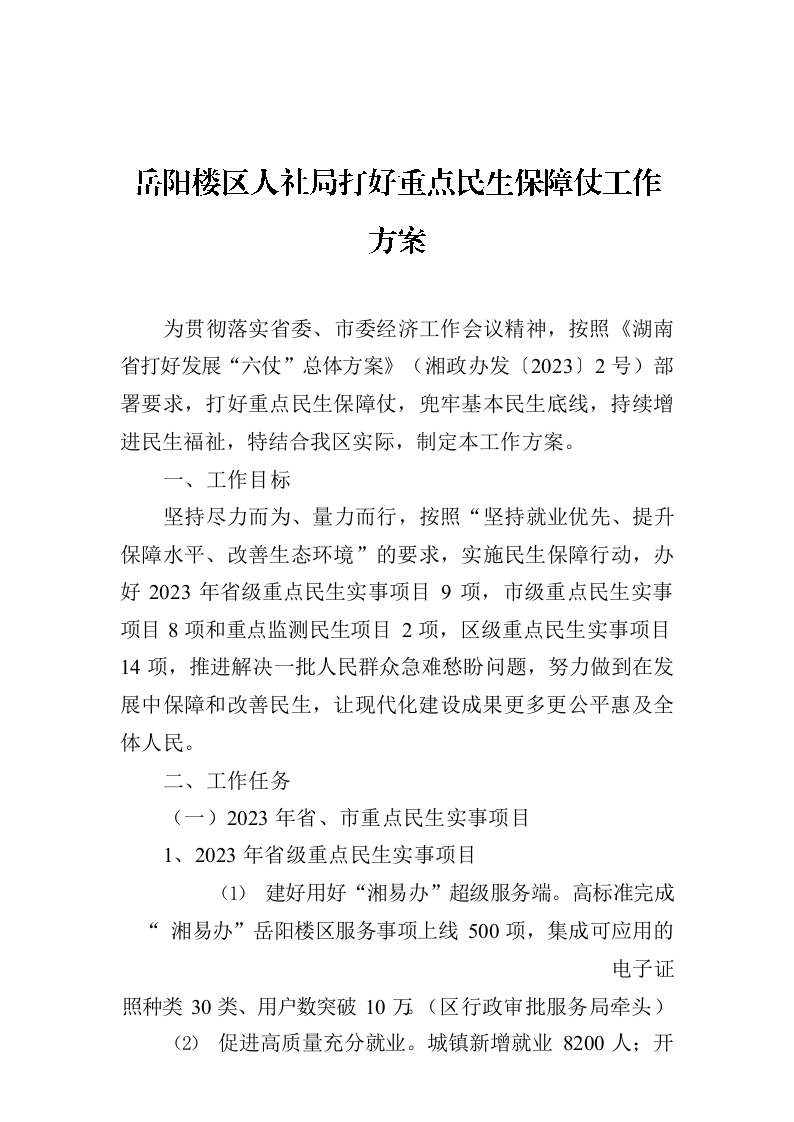 / 岳阳楼区人社局打好重点民生保障仗工作方案