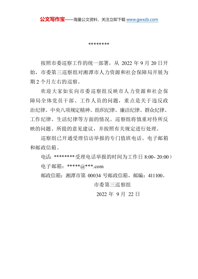 巡察通告(湘潭市委第五巡察组)