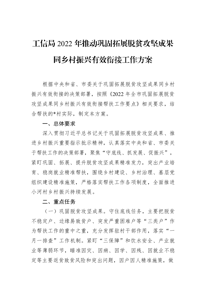 / 工信局2022年推动巩固拓展脱贫攻坚成果同乡村振兴有效衔接工作方案