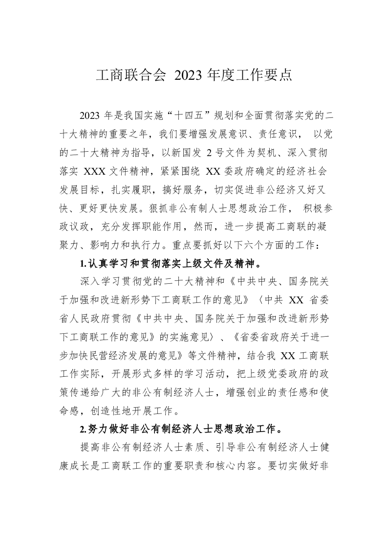 / 工商联合会2023年度工作要点