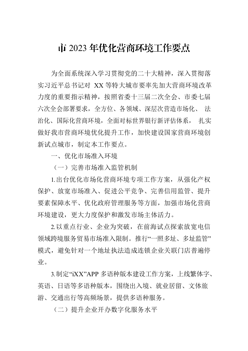 市2023年优化营商环境工作要点(20230718)