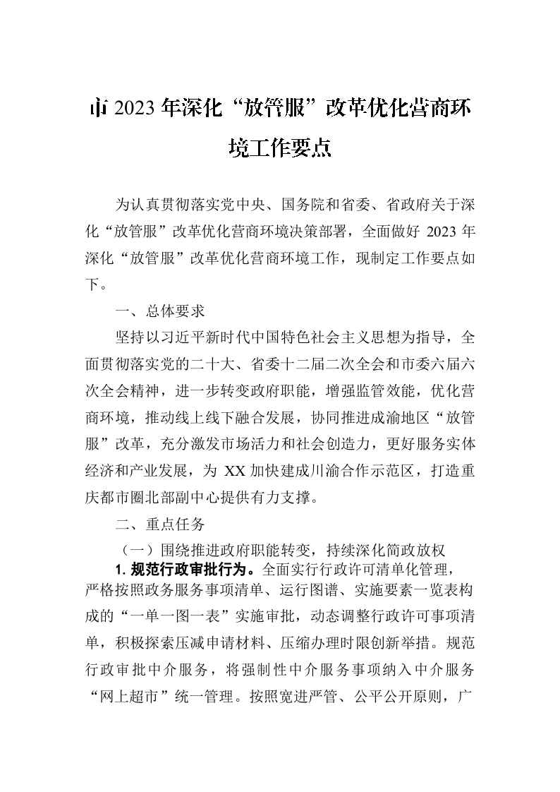 / 市2023年深化“放管服”改革优化营商环境工作要点(20230428)