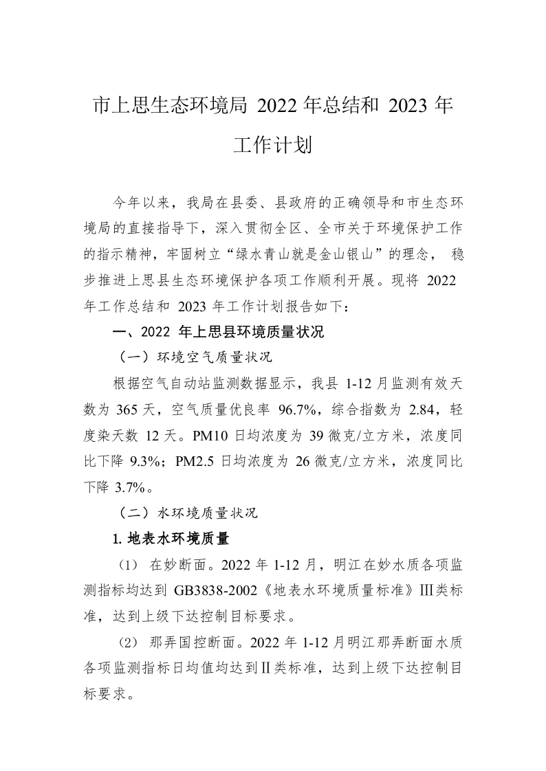 / 市上思生态环境局2022年总结和2023年工作计划