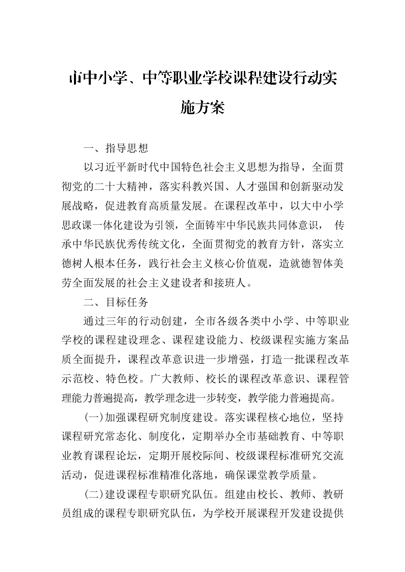 / 市中小学、中等职业学校课程建设行动实施方案(2023年7月31日)