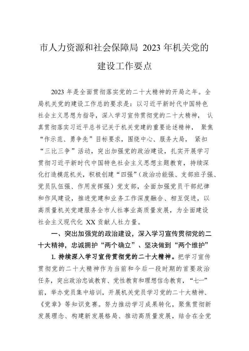 / 市人力资源和社会保障局2023年机关党的建设工作要点(20230506)
