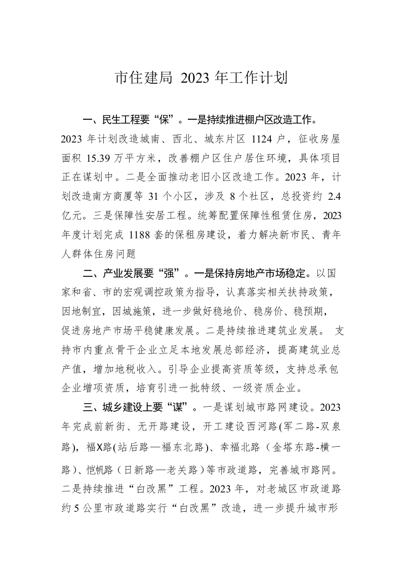 / 市住建局2023年工作计划