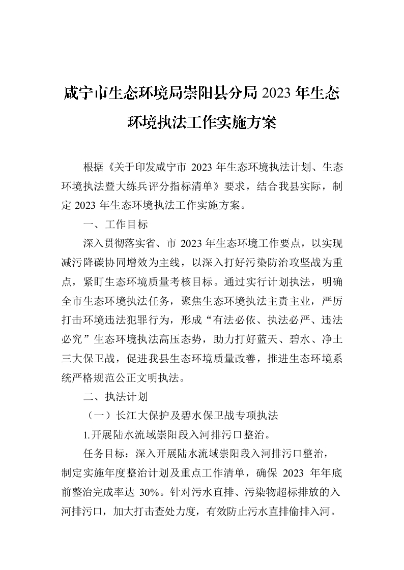 / 生态环境局县分局2023年生态环境执法工作实施方案