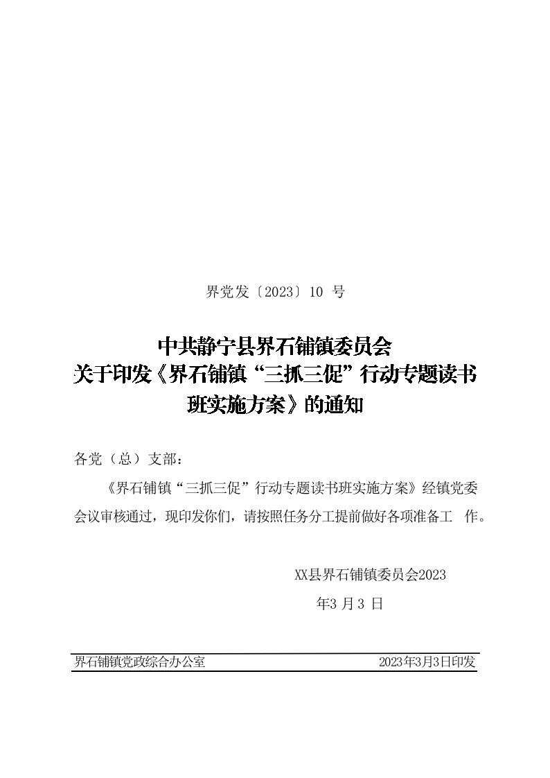 / 界石铺镇三抓三促专题读书班实施方案