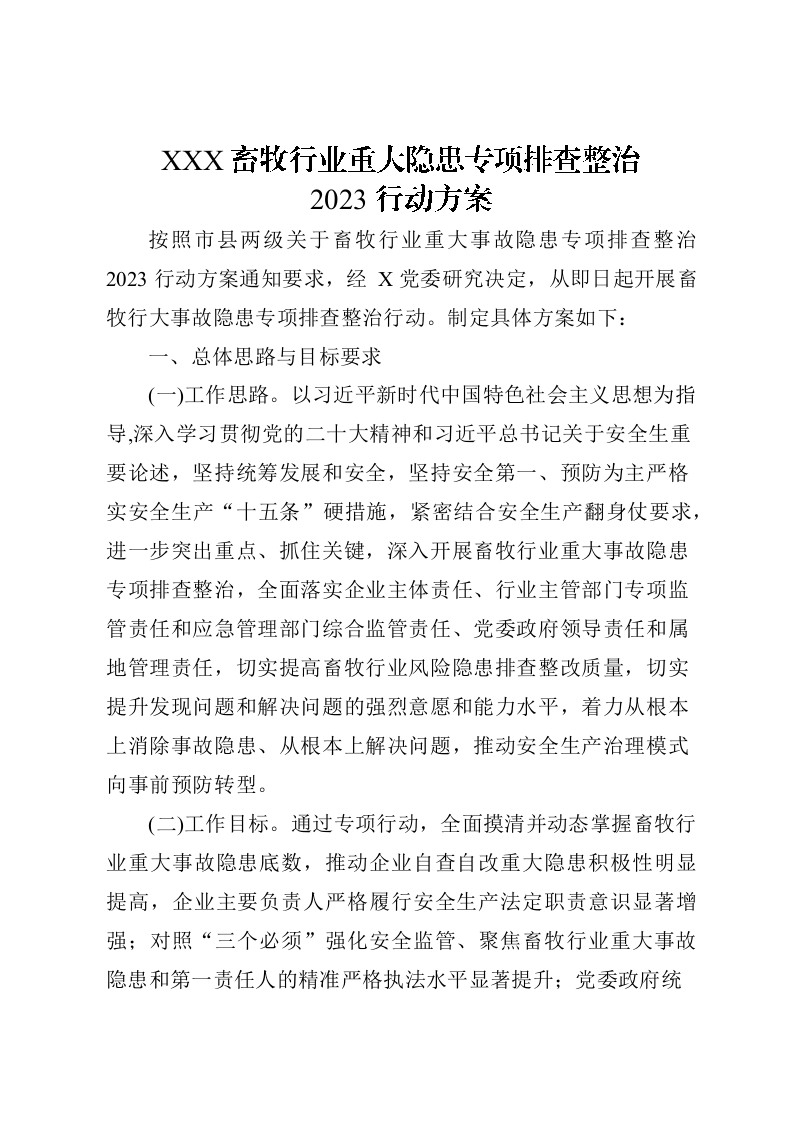 / 畜牧行业重大隐患专项排查整治 2023行动方案