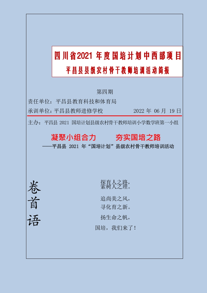 / 省2021年度国培计划中西部项目平昌县县级农村骨干教师培训活动简报