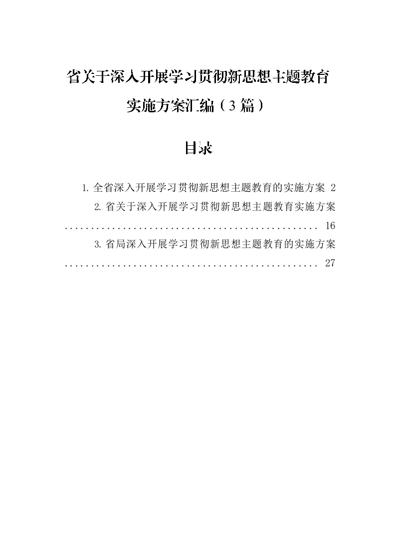 / 省关于深入开展学习贯彻新思想主题教育实施方案汇编(3篇)