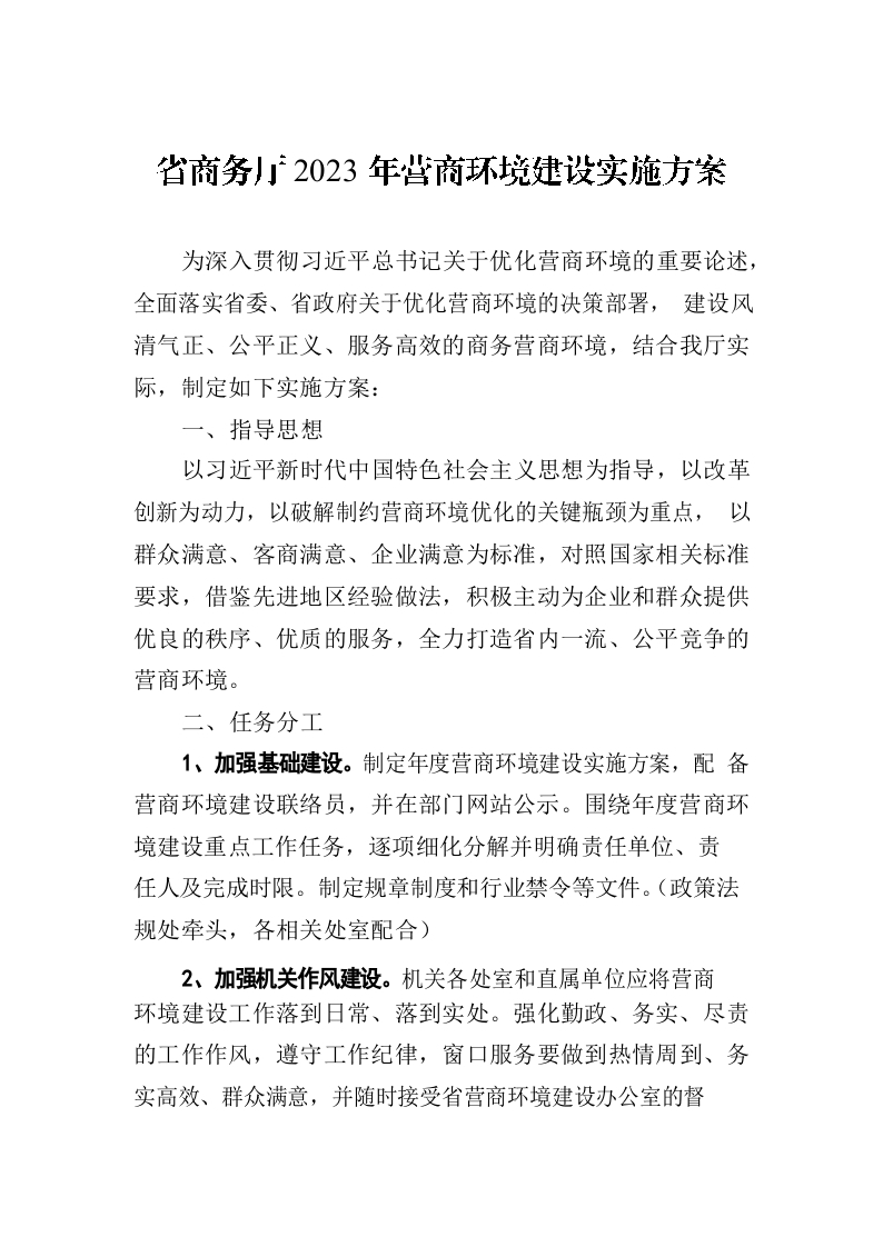 / 省商务厅2023年营商环境建设实施方案(20230621)