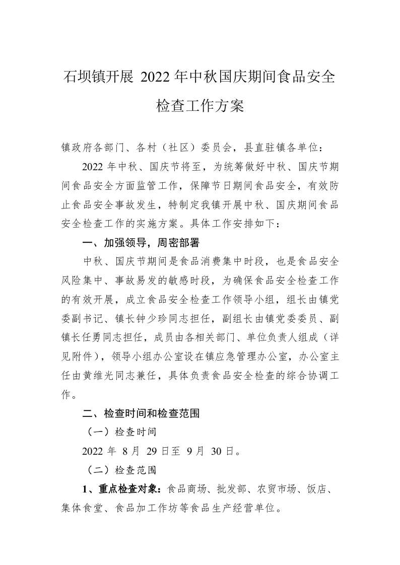 / 石坝镇开展2022年中秋国庆期间食品安全检查工作方案(20220909)