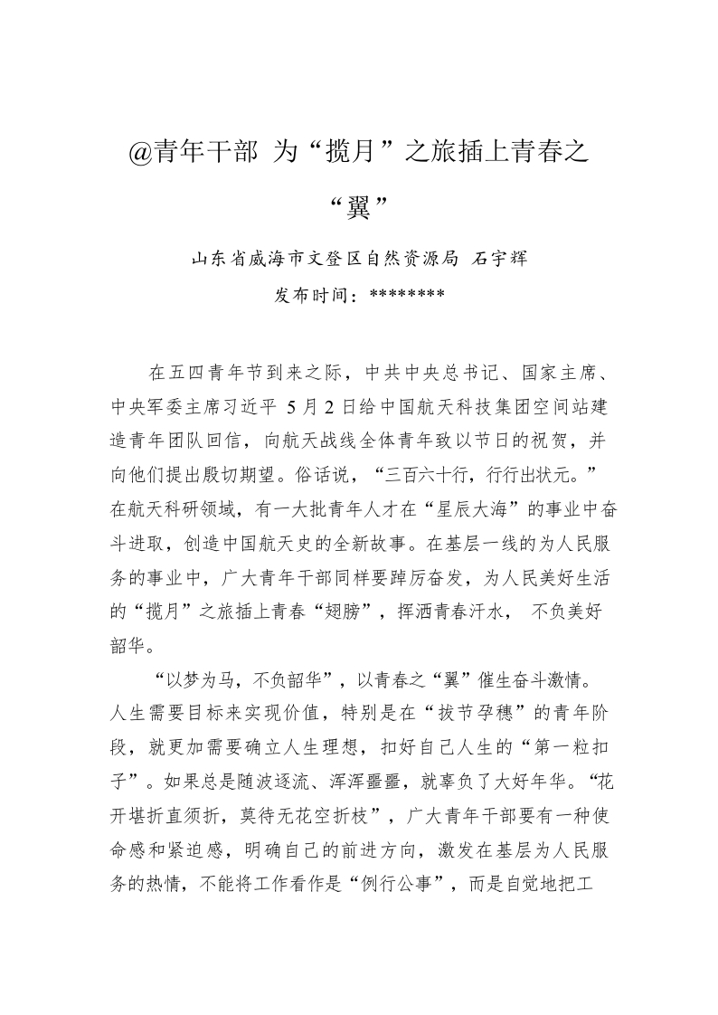 / 石宇辉:@青年干部 为“揽月”之旅插上青春之“翼”(20220506)