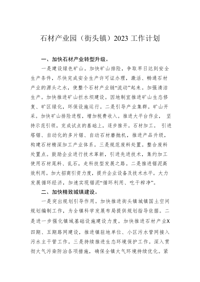 / 石材产业园(街头镇)2023工作计划